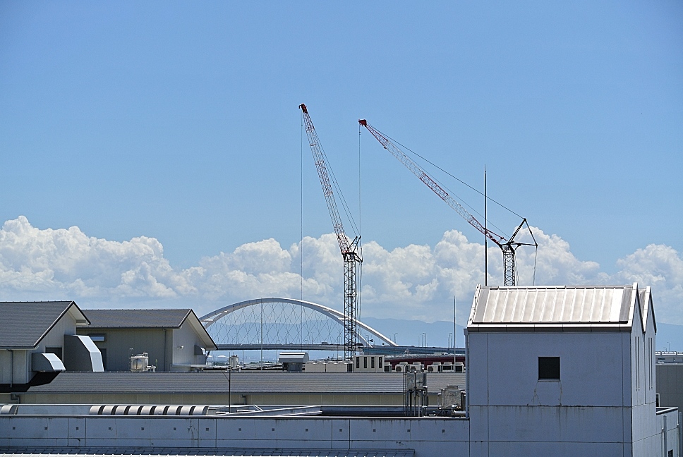 夏の高気圧が力を取り戻し、当方の長屋を吹きぬける風も32℃を超え、夏が戻った感じですね。でも、南風が心地よく、体感温度はそんなに高くなく、冷房の必要はまったくありません。下界と違って高層階の良いところと勝手に思っています。神戸の方を眺めると摩耶山辺りまでくっきりと見えますが、空気は夏のものですね。この景色は、当分失われる恐れはありません、何故ならお隣の芦屋市は高層マンションを許可していませんから、余程の事情の変化がない限り、この眺望が失われないと思います。紀伊山脈の方の眺望はまもなく失われます。長谷工のマンション工事が着々と進み、ここに15階建てのマンションが建ちます、>_<;。臨港線の南側は住専でも何でもありませんので、建て放題です。